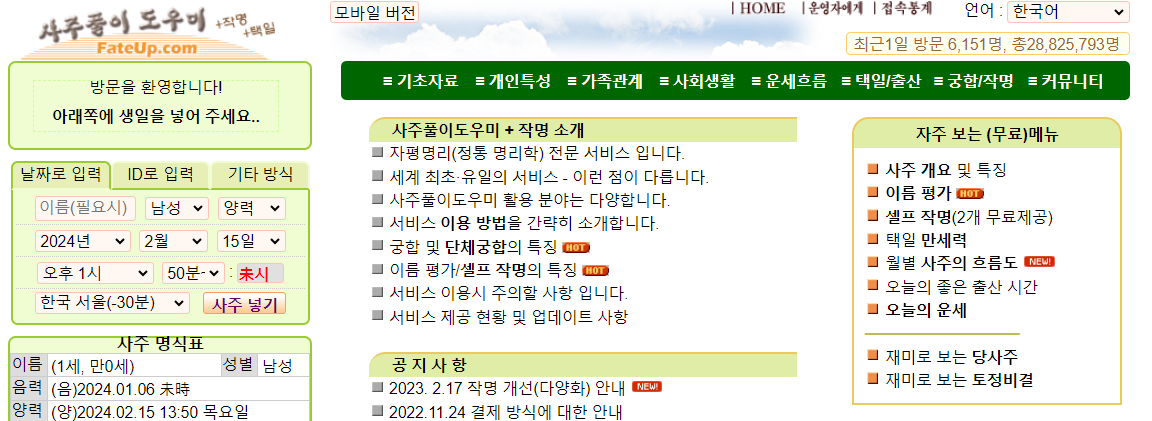 가장 먼저 알려드릴 토정비결 사이트는 바로 사주풀이도우미 사이트입니다.