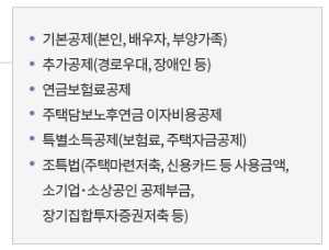 아래 소득공제 항목에 대해 알아보시기 바랍니다.