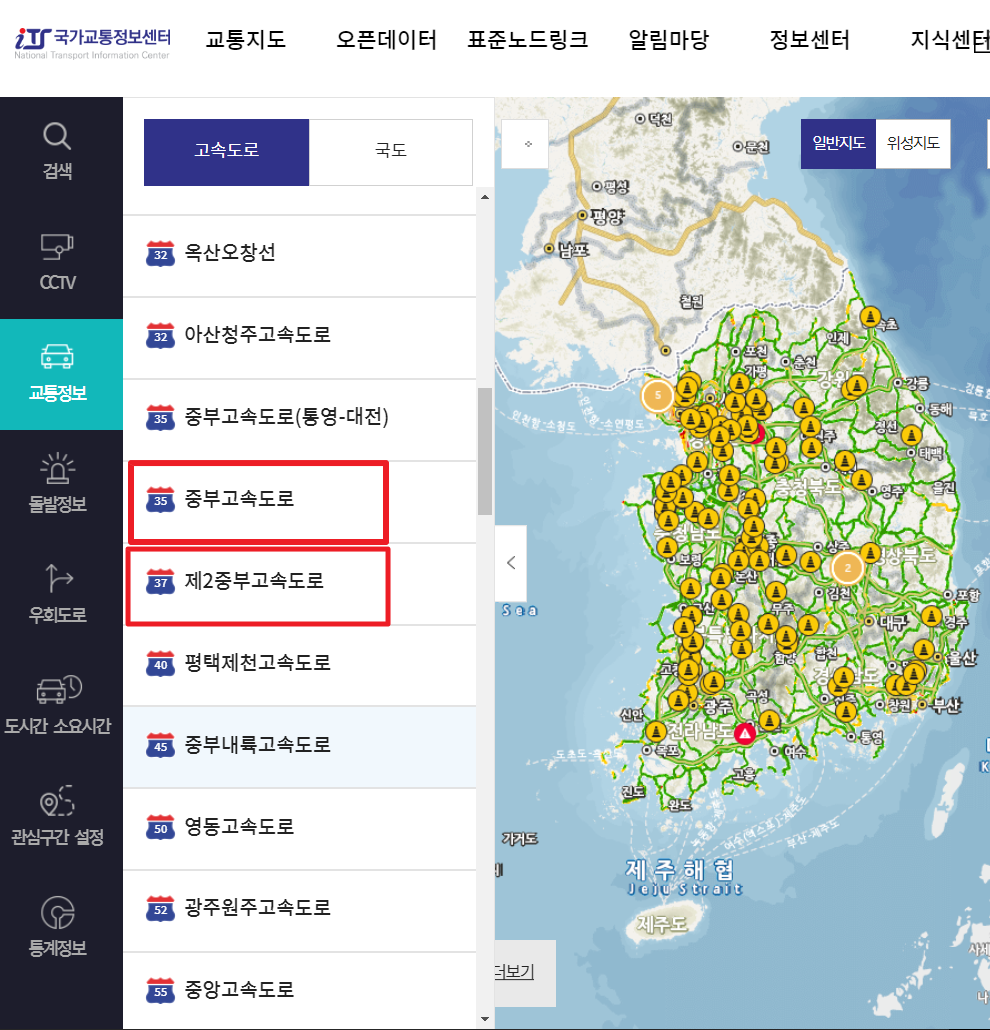 ITS 국가교통정보센터는 국토교통부에서 운영하는 사이트인데요, 사실 중부 고속도로의 교통상황 외 다른 고속도로도 모두 확인해볼 수 있습니다.