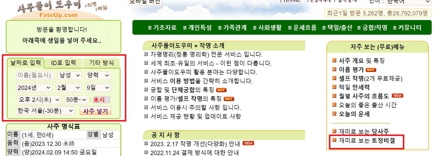 가장 먼저 알려드릴 토정비결 무료 사이트는 바로 사주풀이 도우미 사이트입니다. 하루에도 수천명이 들어오는 매우 공신력 있는 사이트입니다.