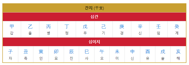 우리나라는 이와 같이 12지간지와 함께 천간 즉 10간을 조합하여 60갑자표로 표현했는데요,