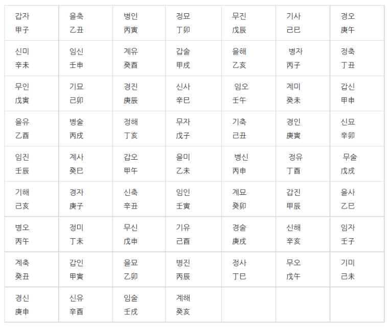 그렇다면, 60갑자표를 확인해볼까요?